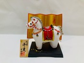 白馬の置物は神社でも飾られ縁起が良いとされていますので年があけても飾っていただけます。